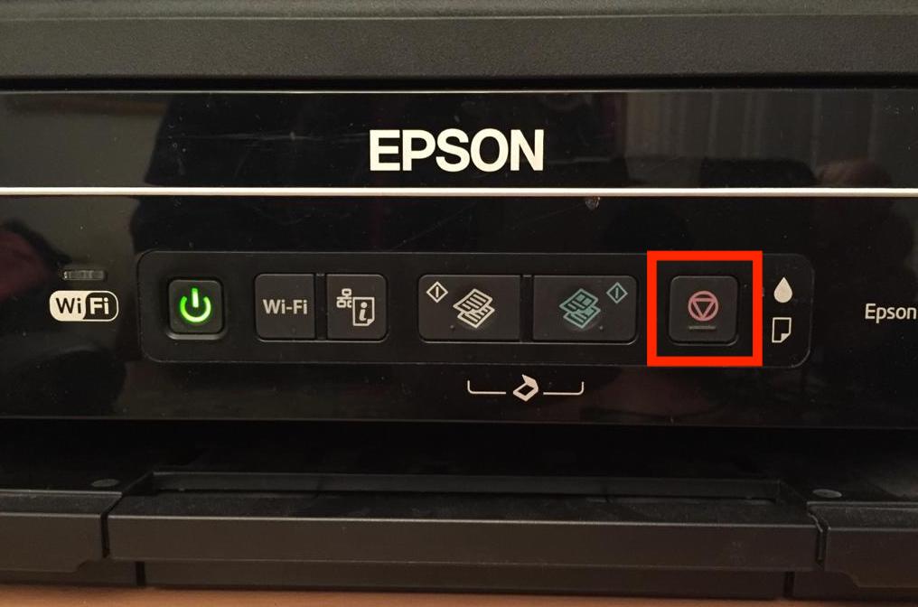 Per risolvere, è necessario portare il carrello dell’alloggiamento cartucce in posizione di sostituzione. Per fare ciò, premere il pulsante INK/OK (evidenziato in figura 2) sul pannello della stampante oppure seguire la procedura guidata di sostituzione cartucce presente nelle Utility del Software stampante.