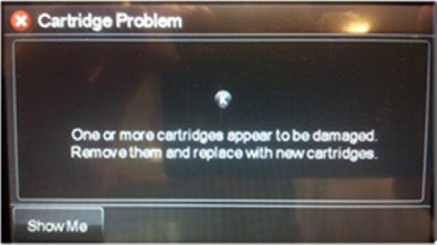 Se durante l’utilizzo di cartucce non originali HP compare un messaggio di errore “Problema Cartuccia” come quello mostrato in figura 1, è possibile che la stampante abbia attivato la funzione di “Sicurezza dinamica”, che provoca il rifiuto della cartuccia non originale HP. È anche possibile che la cartuccia, pur essendo originale, presenti un problema elettrico che genera tale tipo di errore.