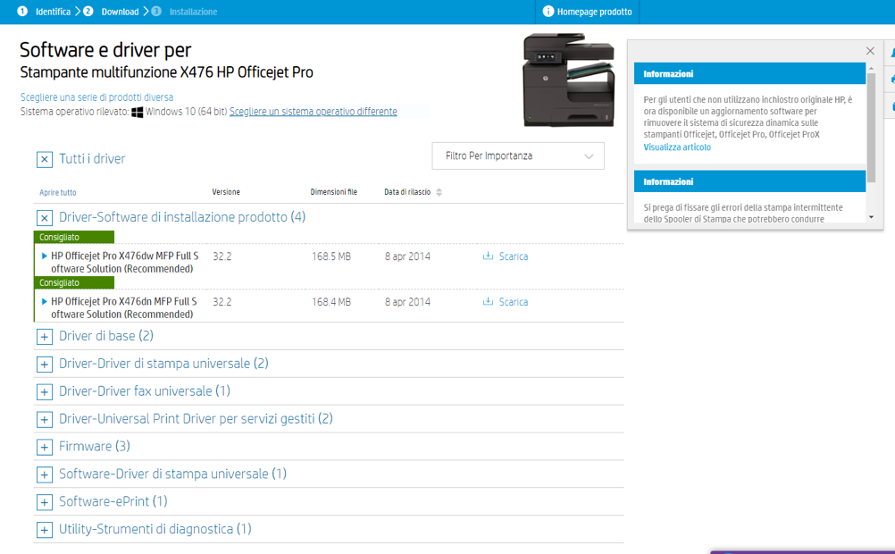 Il sito HP riporta le seguenti informazioni, in lingua italiana, consultabile qui.
